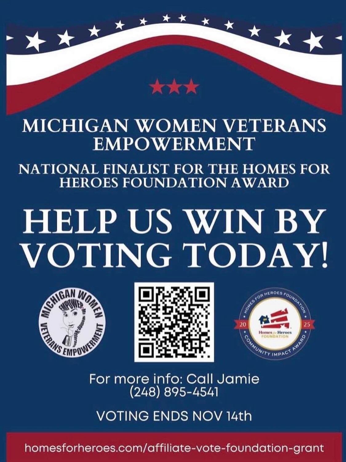 MIWVE is honored to be a National finalist for the Homes for Heroes Foundation's $ 10,000 Community Impact Award! This is a major opportunity for us to give back to veterans in the State of Michigan that are facing food insecurity during these challenging times. Your vote for MIWVE is a vote for Michigan Veterans in need of support, over the years MIWVE's programs, events and services have been FREE. All we're asking from you is to pay it forward by voting for us November 3 to November 14th the winning organization will be announced on Monday November 17th. Thanks in advance for your support! We're grateful!!